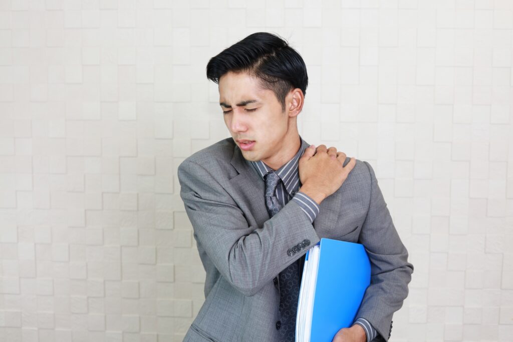 胸郭出口症候群の症状は、その現れ方が人によって異なります。代表的なのは、首や肩周りの重だるさや痛みに加えて、腕や手にしびれや脱力感を感じるものです。中には「長時間デスクワークをすると腕がしびれて作業がつらい」「荷物を持つと肩から腕にかけて痛みが広がる」といったように、日常生活の動作に支障をきたすケースも少なくありません。